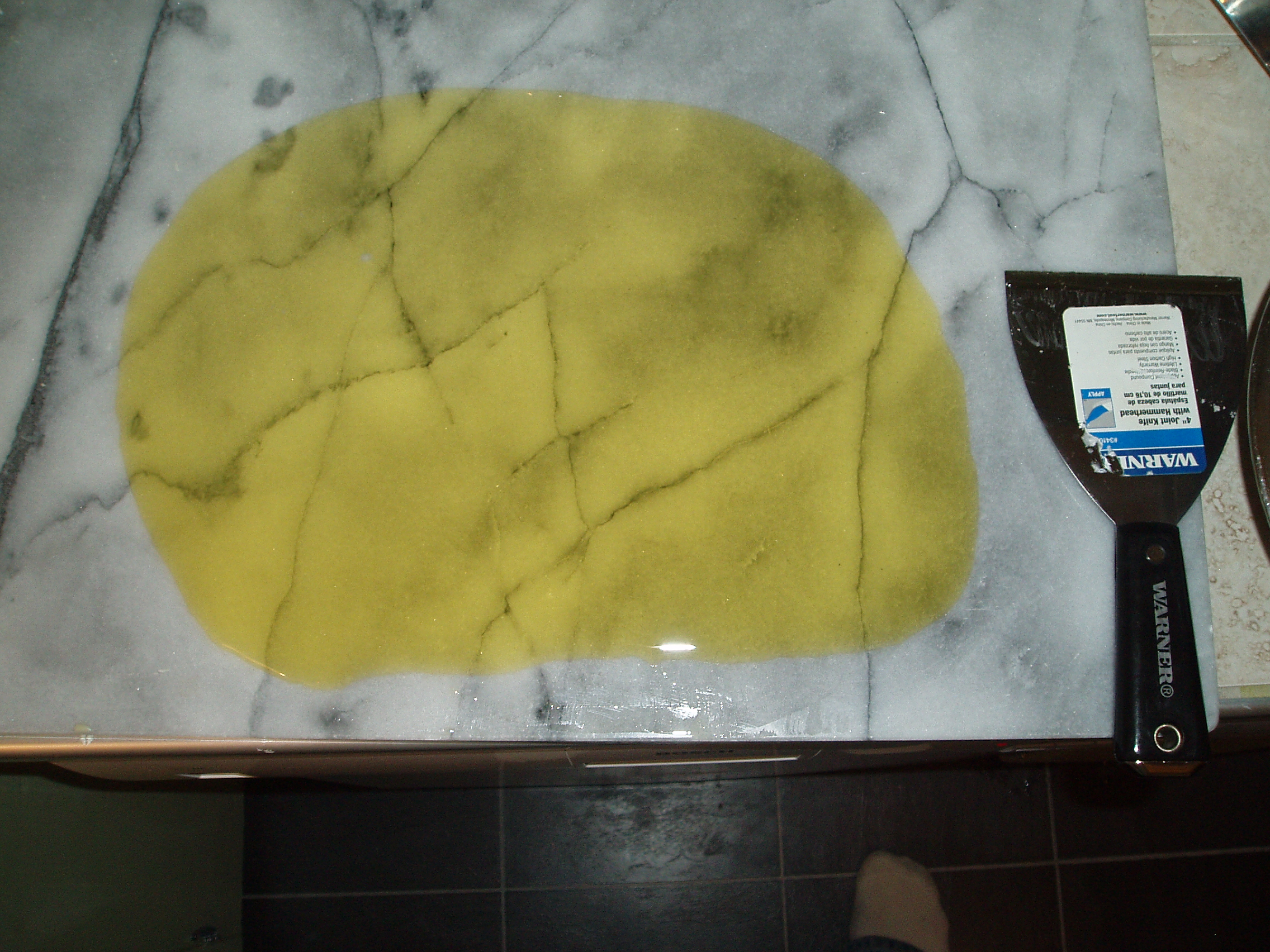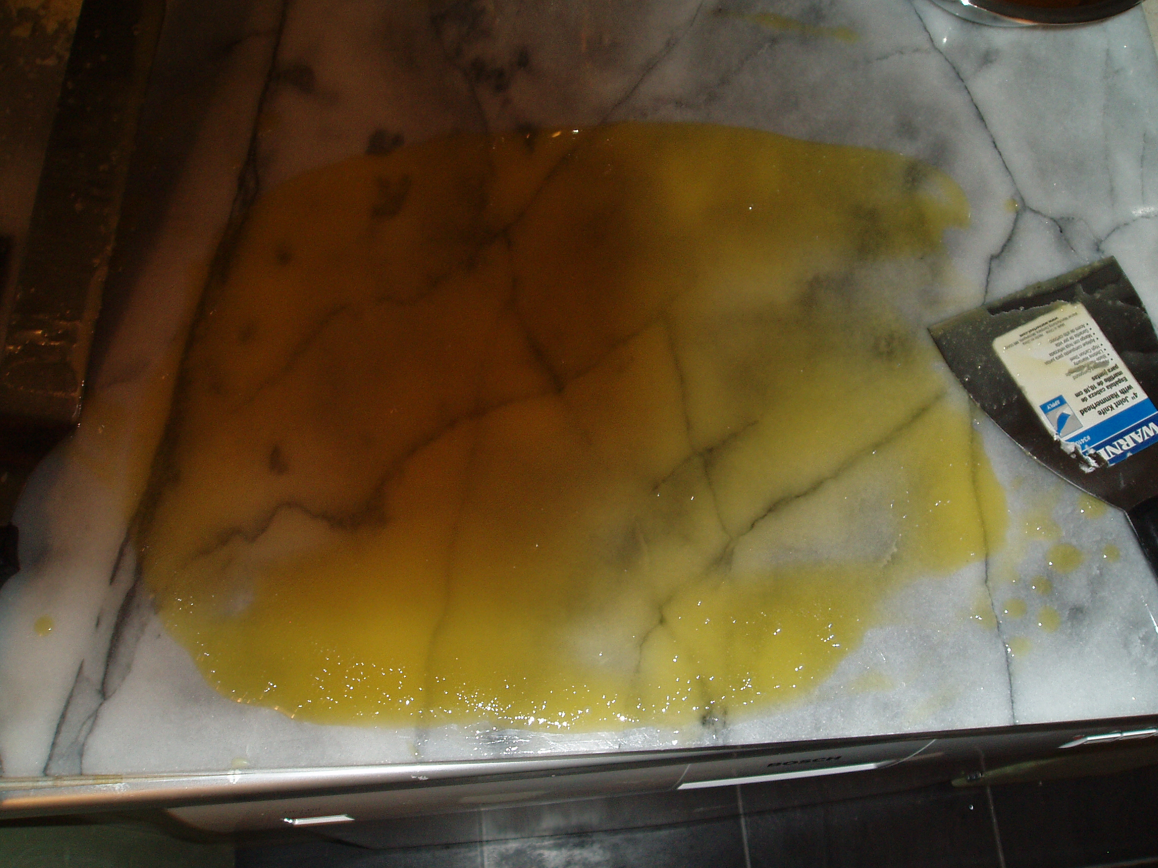 Fully melted. Now to the table, see how clear that is, no crystals. And notice this is just a 1 inch pastry slab, you don’t need a marble counter though it would be nice 🙂