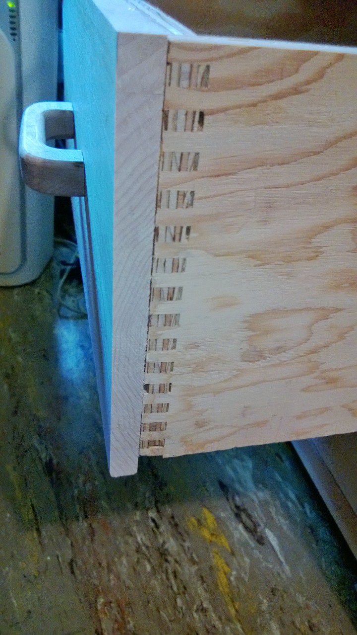 All ripped down and ready to go. I re-sawed a few pieces on my bandsaw for the drawer sides and backs then cleaned them up with my #4 Bailey. I did thickness plane down the raised panels with my #5 set up as a scrub and cleaned up with the #4. I only used my surface planer for some 1/2″ x 1/2″ strips to hold the drawers and panels.